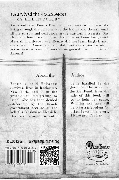 Artist and poet, Renate Kaufmann, expresses what it was like living through the bombing and the hiding of WWII in Germany, and then through all the sorrow and confusion in the war-torn aftermath. She also tells how, later in life, she came to know her Jewish Messiah in a deeper way.  Renate did not learn English until she came to America as an adult, yet she writes beautiful poems in what is not her mother tongue—all for the glory of the Lord!