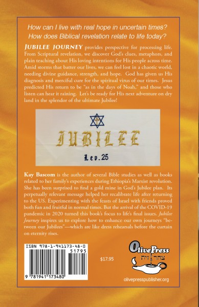 Kay Bascomis the author of several Bible studies, as well as books related to her family’s experiences in Ethiopia during the Marxist revolution. Over the years, she has been surprised to find a gold mine in God’s revelation of His Jubilee plan. Its perpetually relevant message helped her family recalibrate their bearings after returning to the States. Experiments with the feasts of Israel with friends on a Kansas farm proved both fun and fruitful in normal times. But the abnormal arrival of the COVID-19 pandemic in 2020 turned this book’s focus to life’s universally-faced final issues. Jubilee Journey inspires us to explore how to enhance our own lives between our Jubilees – which are like dress rehearsals before the curtain on eternity rises.